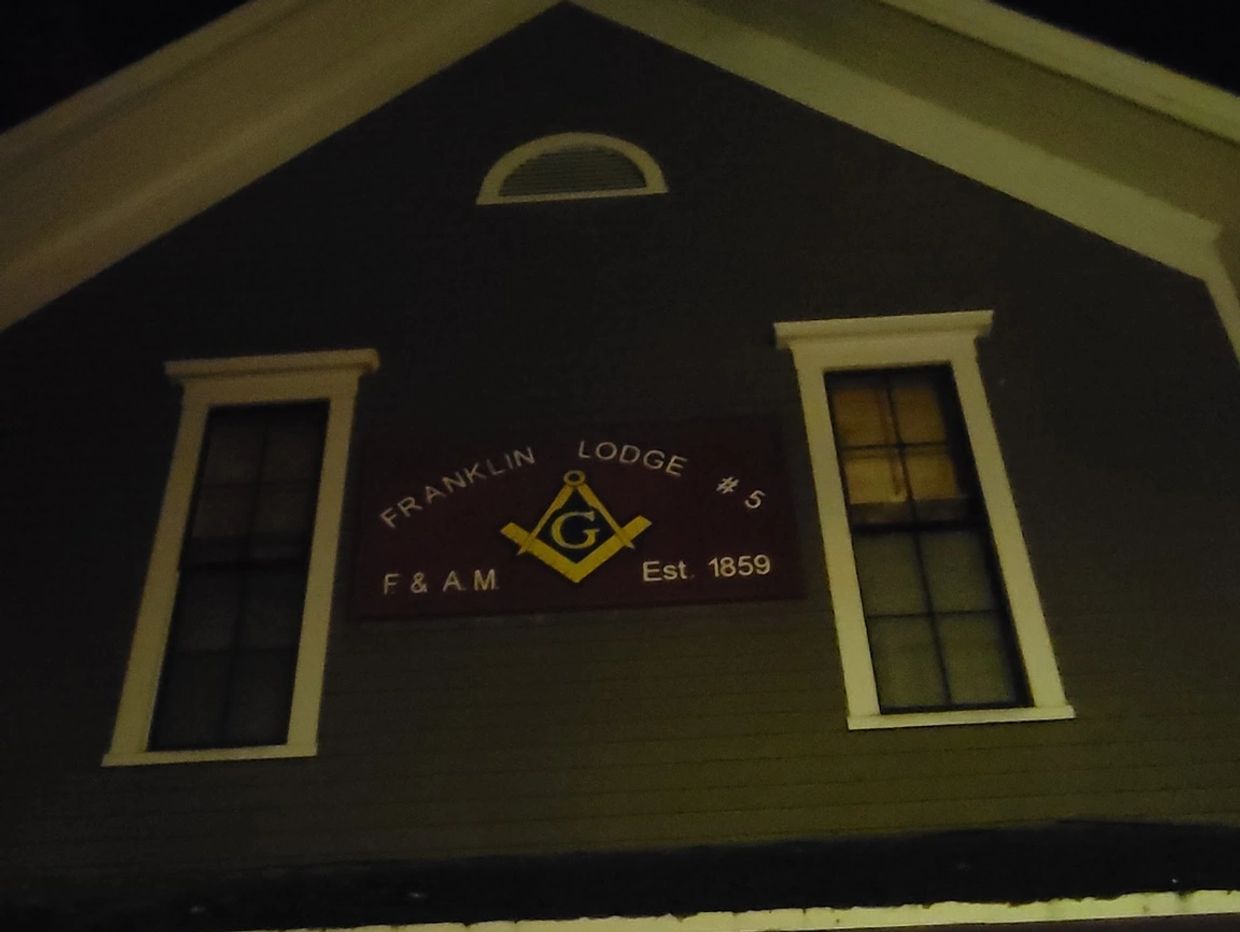 The original building was destroyed by a fire around 1867. For the next three years, the lodge was given special dispensation to hold meetings in a community hall. Franklin Lodge has been in existence for 163 years, and the building you see today is where Freemasons have met for 151 of those years—and still going strong!